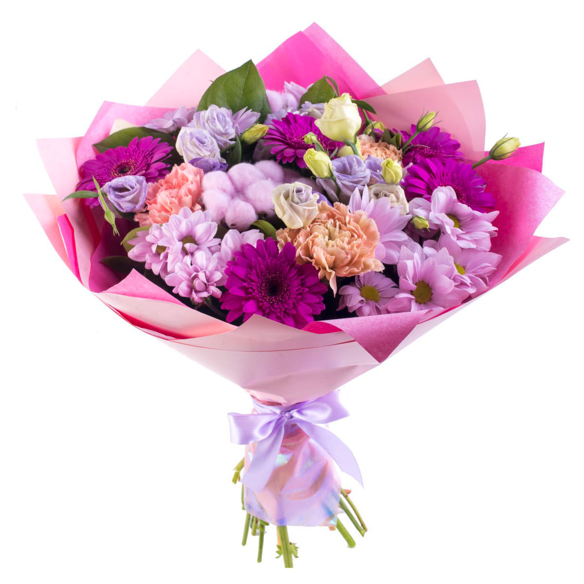 На фото представлен образец. Объем букета зависит от выбранного вами размера. Точное количество цветов и цветовую гамму вы можете уточнить у менеджера по телефону.